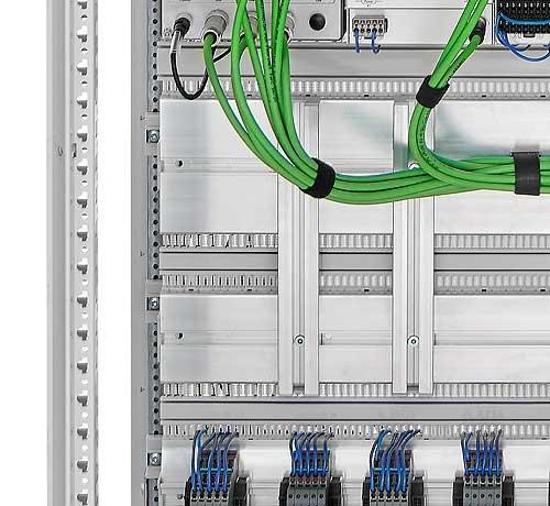Das AirSTREAM Compact-Verdrahtungssystem wird in kleineren, kompakten Schränken eingesetzt, in denen oftmals der Platz in der Tiefe sehr begrenzt ist. Die Stegprofile werden beim AirSTREAM Compact nicht über Bügel, sondern über filigranere Stützer getragen.