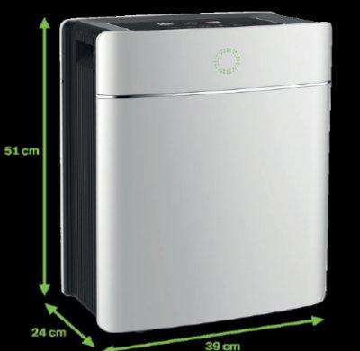 Speziell als Home-Luftfilteranlage leistet das Gerät gute Dienste. Es ist mit einer Ionisations-Funktion ausgestattet. Große Luftmengen behandeln die Raumluft in kürzester Zeit. Alles geschieht vollautomatisch. Ein Sensor mißt die Luftqualität und passt die Luftströmungsgeschwindigkeit an. Feinsts Partikel von 0,1 – 0,2 m werden ausgefiltert. Mit negativen Ionen und aktiviertem Sauerstoff entfernt das Gerät Gerüche, Viren und Bakterien. Mit UV-Licht werden die Bakterien und Viren im Gerät getötet bzw. sterilisiert. Dies bis zu einem Wirkungsgrad von 99,99 %.