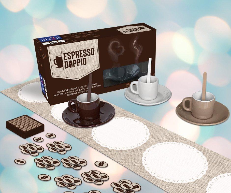 „Espresso Doppio“ ist der perfekte Spielgenuss für zwei Kaffeeliebhaber. Enthalten ist außerdem eine Solo- und Mastervariante – für Spieler, die eine intensivere Herausforderung schätzen.