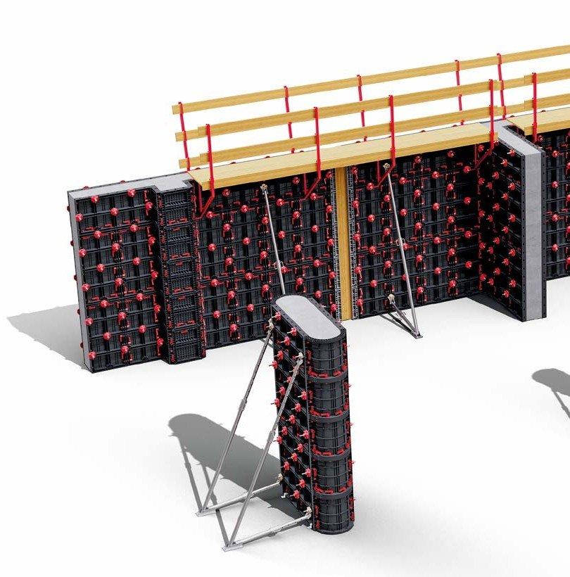 Paneele und Säulenschalungselemente mit verschiedenen modularen Abmessungen sind an die Größe jeder Wand anpassbar. Die Arbeit mit unserer Schalung kann unter bestimmten Bedingungen wie beengten Platzverhältnissen bei Arbeiten in Höhen oder an Kulturstätten effizienter sein.