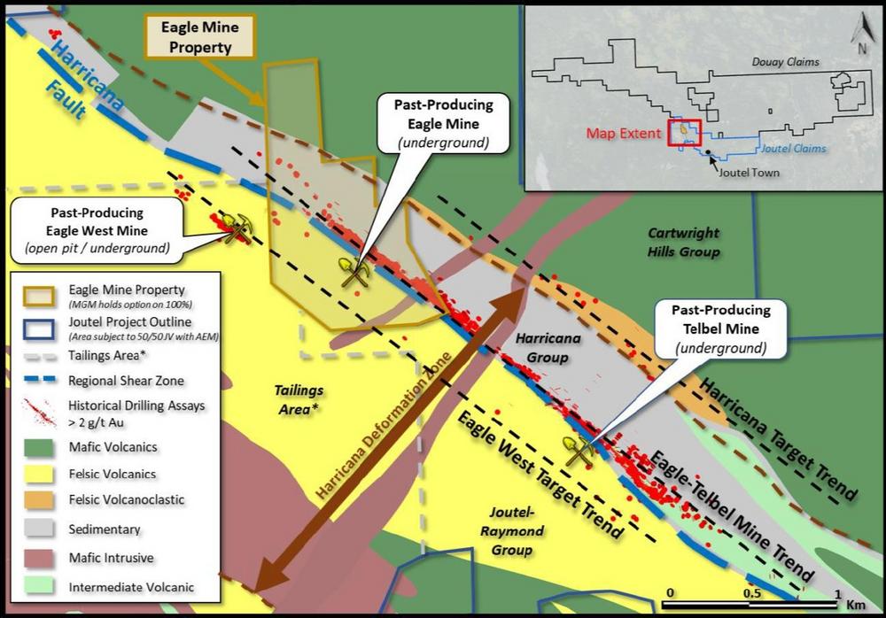 Maple Gold Mines Ltd. is a Canadian advanced exploration company in a 50/50 joint venture with Agnico Eagle Mines Limited to jointly advance the district-scale Douay and Joutel gold projects located in Quebec’s prolific Abitibi Greenstone Gold Belt. The projects benefit from exceptional infrastructure access and boast ~400 km2 of highly prospective ground including an established gold resource at Douay (RPA 2019) that holds significant expansion potential as well as the past-producing Eagle, Telbel and Eagle West mines at Joutel. The Company holds an exclusive option to acquire 100% of the Eagle Mine Property.