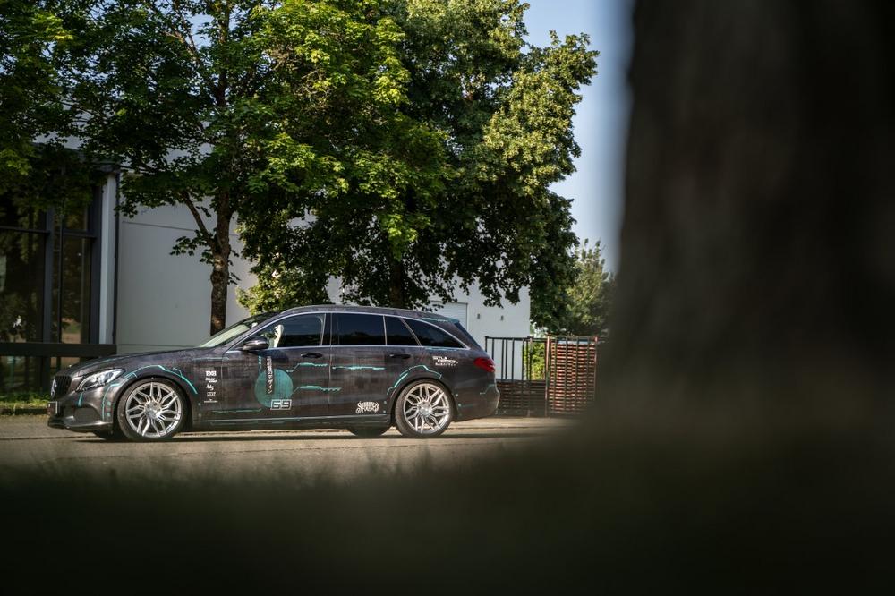 Der Umbau des Stuttgarter Kombis war ein Gemeinschaftsprojekt der Folierungs-Spezialisten von SchwabenFolia mit Stuii Design, KW suspensions, RaceChip sowie JMS Fahrzeugteile und Barracuda Racing Wheels Europe. An den Achsen des Mercedes befinden sich Dragoon-Felgen aus der Ultralight Series von Barracuda mit Finish in „Hyper Silber“. Die durch eine Produktion im FlowForged-Verfahren besonders leichten Räder messen vorne 8,5×19 Zoll, während hinten die 9×19-zöllige „Deep Concave“-Ausführung zum Einsatz kommt. Die aufgezogenen Reifen messen 225/40R19 und 255/35R19 und die ergänzende Tieferlegung der Karosserie um etwa 40 Millimeter ist einem KW Variante 3-Gewindefahrwerk zu verdanken.