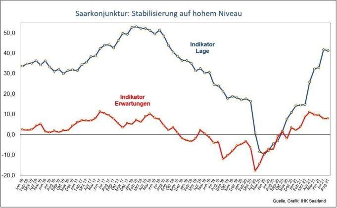 Die Saarkonjunktur hat sich im August auf hohem Niveau stabilisiert. Das signalisieren die Meldungen der Unternehmen zu ihrer aktuellen Geschäftslage und zu den Erwartungen für die kommenden Monate. Zwar gab der IHK-Lageindikator leicht um 0,5 Punkte auf 41,3 Zähler nach, er liegt damit aber nur minimal unter dem Niveau des Vormonats und weiterhin deutlich über […]