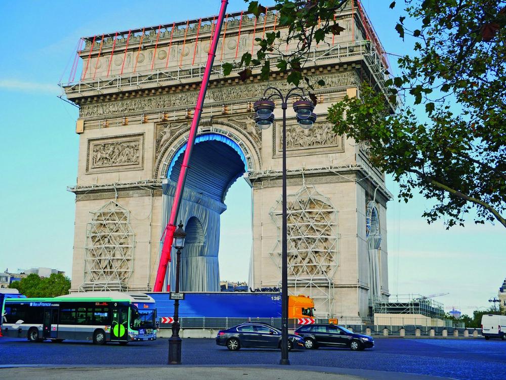 Zurrgurte von Dortmunder Familienunternehmen sichern Verhüllung des Arc de Triomphe