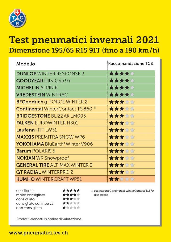 I risultati particolareggiati e le valutazioni dettagliate di tutti i modelli di pneumatici esaminati sono consultabili sulla pagina dei test TCS all’indirizzo http://pneumatici.tcs.ch. Gli attuali test sui prodotti e le interessanti informazioni di base saranno pubblicati anche nella nuova guida “Pneumatici invernali 2021”, disponibile in forma stampata dalla fine di settembre.