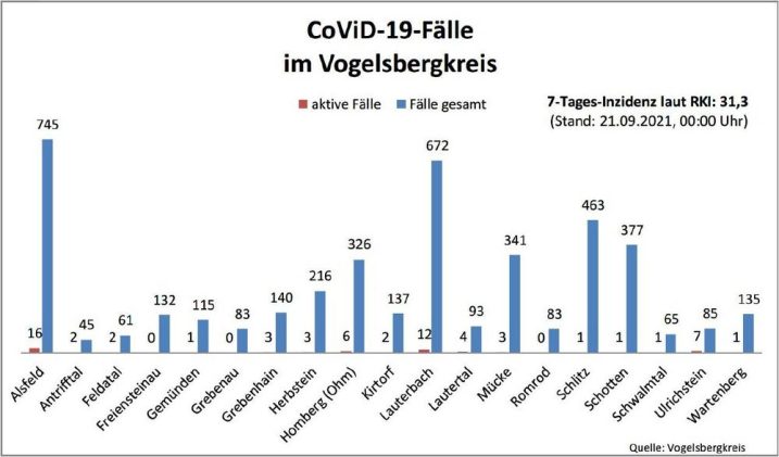 Das Gesundheitsamt des Vogelsbergkreises meldet am Dienstag zwei Neuinfektionen mit dem Corona-Virus. Damit steigt die Gesamtzahl der Fälle seit Beginn der Pandemie auf 4314. Zurzeit betreut die Behörde 65 aktive Fälle – 14 Menschen haben sich als genesen gemeldet. Laut Robert-Koch-Institut ist die Sieben-Tage-Inzidenz auf 31,3 gesunken – hessenweit liegt der Wert bei 74,4. Die […]