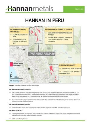 Hannan Metals Limited ("Hannan" oder das "Unternehmen") (TSXV: HAN) (OTCPK: HANNF – https://www.commodity-tv.com/ondemand/companies/profil/hannan-metals-ltd/) berichtet über die Ergebnisse des Explorationsprogramms auf dem Grundstück Tabalosos East innerhalb des Sedimentkupfer-Silber-Projekts San Martin JOGMEC JV in Peru (Abbildungen 1 und 2). Höhepunkte: – Oberflächenkanalproben aus Aufschlüssen bei Tabalosos East, die auf einer Streichlänge von 500 Metern entnommen wurden, ergaben […]