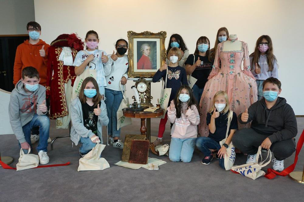 Eine Delegation von Schüler*innen, Lehrkräften und der Schulleitung der Gesamtschule im Essener Stadtteil Schonnebeck durften heute schon einmal ein wenig Theaterluft schnuppern: Gemeinsam mit Projektbetreuerin und Aalto-Dramaturgin Sandra Paulkowsky, den Workshopleiterinnen, Christof Wolf von der Stiftung Zollverein, Dr. Anneliese Rauhut von der GFF und Christine Brockschmidt von der RAG-Stiftung setzten sie den Startschuss für ein weiteres außergewöhnliches Schuljahr. Auf die Jugendlichen warten Proben- und Vorstellungsbesuche und sie werden wertvolle Einblicke erhalten in die Abläufe des Tanz-, Musiktheater- und Konzertbetriebes. Zudem werden sie die Möglichkeit haben, das Welterbe Zollverein besser kennenzulernen. Geht es im ersten Halbjahr noch um einführende Veranstaltungen, setzen sich die Jugendlichen im zweiten Halbjahr in Tanz-, Szenen- und Kunst-Workshops mit einem musikalischen Schwerpunkt-Thema auseinander, wodurch die Akzeptanz klassischer Musik im Alltag gefördert wird. Diesmal richtet sich der Blick auf den Komponisten Wolfgang Amadeus Mozart und seine Musik. Einen kleinen Vorgeschmack gab es bereits heute Nachmittag mit einem musikalischen Beitrag von Amelie Wünsche, Violinistin der Essener Philharmoniker, und Aalto-Pianist Wolfram-Maria Märtig. Die Projektleitung hat Marie-Helen-Joël, Theaterpädagogin am Aalto-Theater.