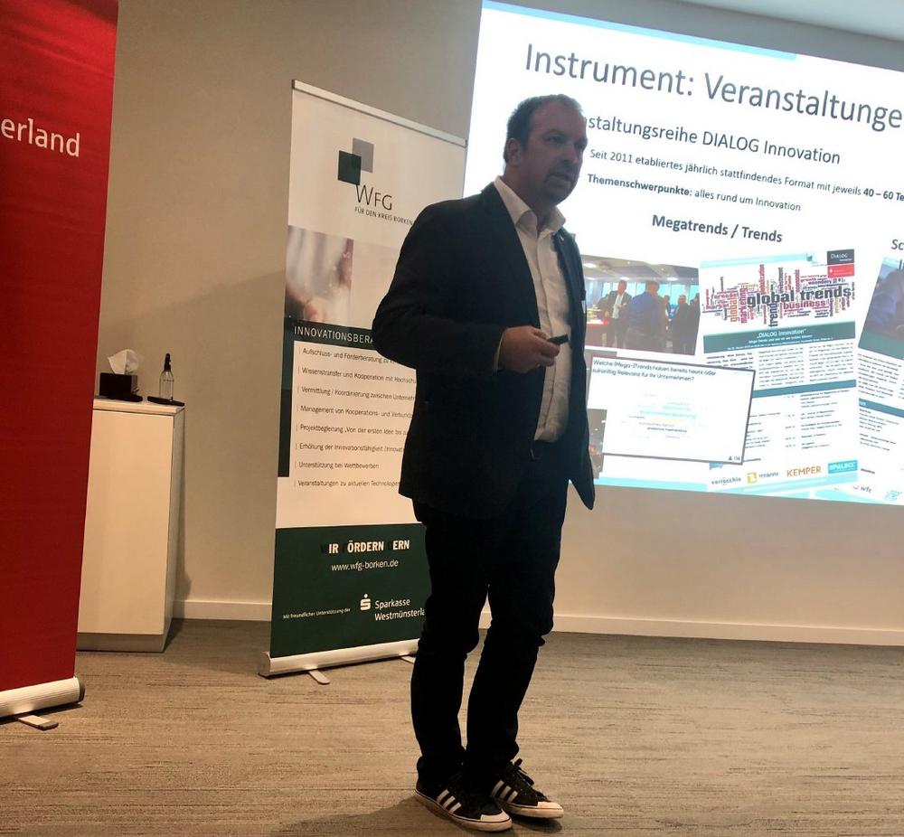„Mehr denn je haben sich die Unternehmen [Anm. der R. in den letzten 1 ½ Jahren] mit ihrer Zukunftsfähigkeit in einem sich verändernden Umfeld auseinandergesetzt. Von entscheidender Bedeutung für die erfolgreiche Gestaltung ihrer Zukunft ist dabei eine starke Innovationskraft in den Unternehmen. Die Unternehmen müssen ihre Produkte, Dienstleistungen und Prozesse immer wieder auf den Prüfstand stellen“, betonte Dieter Wenning, Direktor Firmenkunden der Sparkasse Westmünsterland, bei der Begrüßung und Dr. Markus Könning, Leiter der WFG- Innovationsberatung, ergänzte: „Mit dem Veranstaltungsformat DIALOG Innovation, das im Jahr 2011 ins Leben gerufen wurde, beleuchten wir im Umfeld von Innovationen immer wieder interessante Themen und setzen Impulse.“