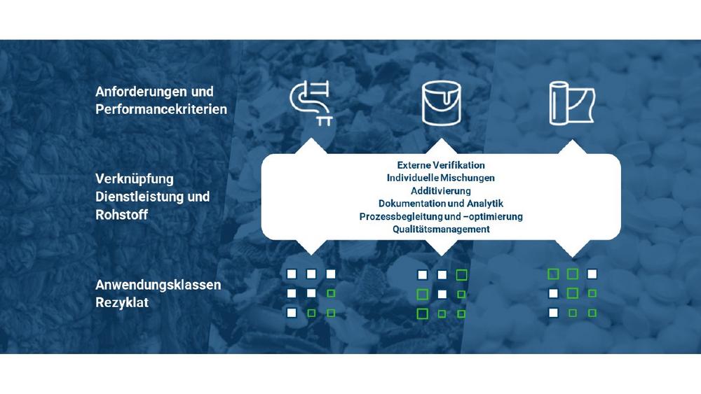 Im Projekt werden mit Partnerunternehmen Qualitäts- bzw. Performancekriterien für einzelne Anwendungen definiert und erfasst. Anschließend werden mögliche Rezyklate hinsichtlich Erfüllung der Anforderungen überprüft. Dies umfasst die Nachweisführung bzw. Dokumentation und Qualitätssicherung, den verwendeten Recyclingprozess bis hin zum Materialeingang beim Verwerter. Darauf basierend wird eine externe Bestätigung generiert, dass das gewählte Rezyklat sicher in der Anwendung einsetzbar ist.
