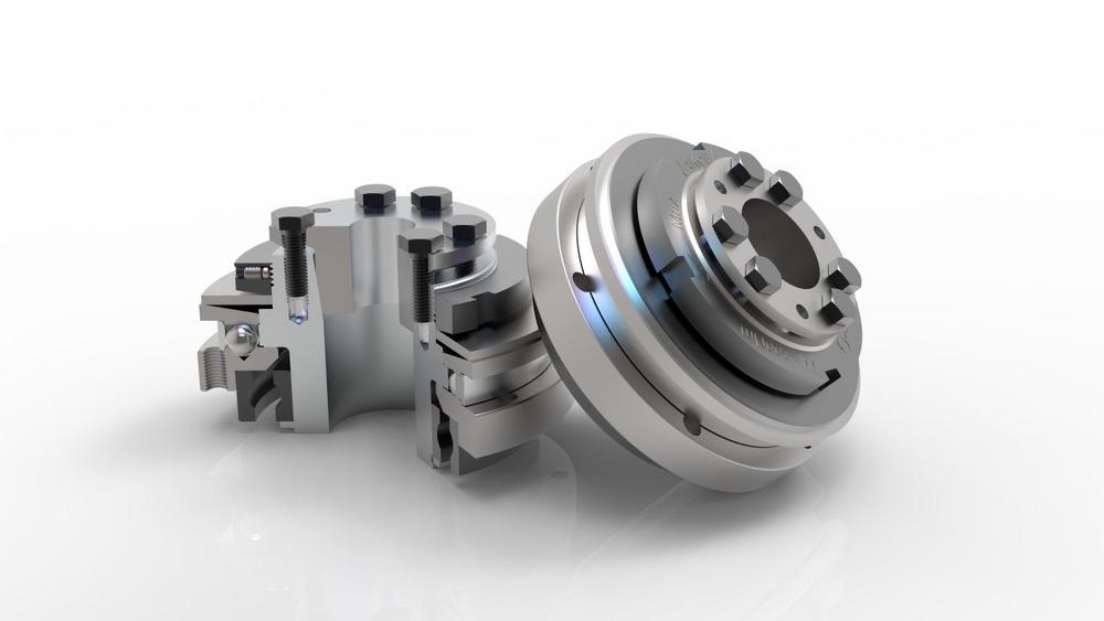 The safety coupling of the SKY series for indirect drives from JAKOB Antriebstechnik is designed as overload limiter or collision protection for the most modern requirements. With a compact design, it can still offer high release torques of up to 9000 Nm. The conical clamping bushing enables simple assembly, large shaft or bore diameters, the high possible bearing load and the excellent concentricity round off the safety coupling. By using high-strength quenched and tempered steel with surface hardening or plasma coating of the relevant functional surfaces, particularly high release torques could be achieved. It is also available in a rustproof version on request.