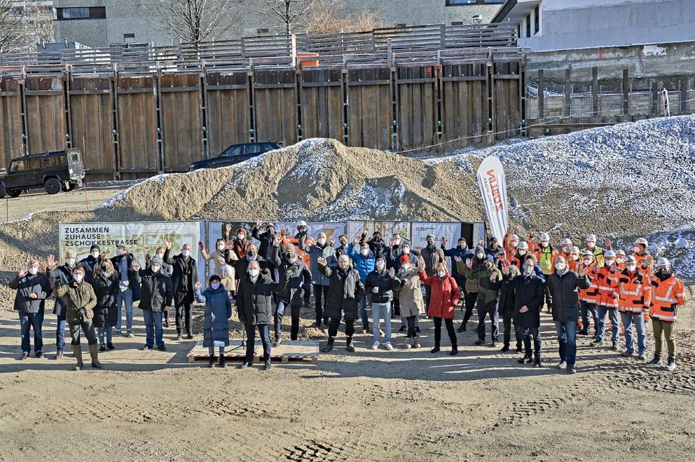 Gemeinsam haben Markus Ballauf als Vertreter der Eigentümerfamilie und Richard Rüdt, Geschäftsführer der GEHO-West, am Freitag, den 3. Dezember 2021, bei der Grundsteinlegung im Baufeld des neuen Quartiers den Baubeginn von Z OST feierlich eingeläutet. “Ich bedanke mich für die Arbeit aller Menschen, die hinter dem Z stehen – seien es unsere Architektinnen und Architekten, die dem Z ein Gesicht geben oder die Mitarbeiterinnen und Mitarbeiter von ZÜBLIN, die die Häuser des Quartiers nun Tag für Tag ein Stück weit mehr Realität werden lassen”, so Markus Ballauf in seiner Begrüßungsrede. “Ich wünsche insbesondere den Menschen vor Ort, dass bei den Arbeiten an der Zschokkestraße alles nach ihren Plänen läuft und alle gesund bleiben.”