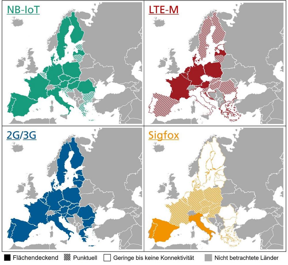 Für logistische IoT-Anwendungen, die einen europaweiten kontinuierlichen Empfang benötigen, empfehlen die Forscher des Fraunhofer IML deshalb einen Verbund von LPWAN-Technologien (NB-IoT, LTE-M, Sigfox) und klassischem Mobilfunk (2G-4G). Nur so könne zum jetzigen Zeitpunkt eine europaweite Datenübertragung garantiert werden. Die Zukunft der Konnektivität von IoT-Devices liege dennoch klar bei den LPWAN-Technologien.