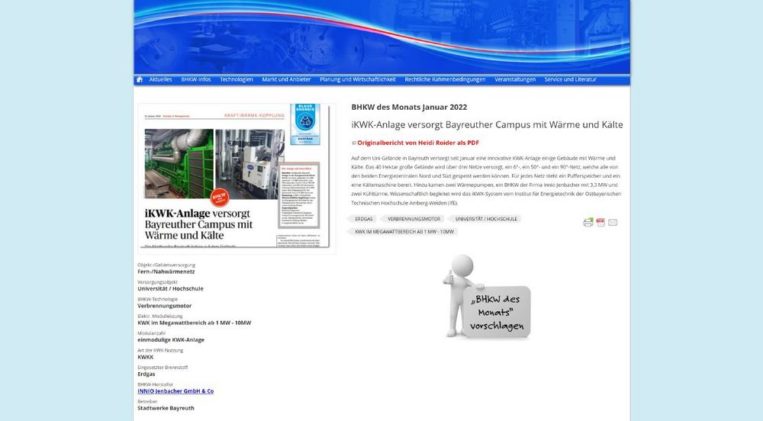 iKWK-Anlage in Bayreuth wird zum BHKW des Monats Januar gekürt