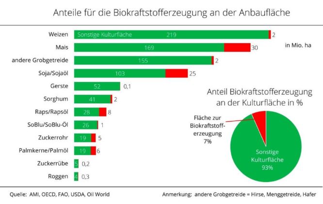 Rohstoff zur Biokraftstoffproduktion steht auf 7 % der Anbaufläche