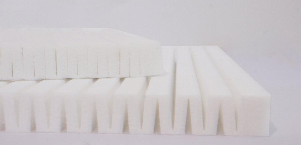 Die Lösung für das Fertigen großer Sandwichverbundteile ist das Werkstoff-Kit mit Ziehharmonikaeffekt von Gaugler & Lutz. Dabei handelt es sich um den Kernschichtwerkstoff, der mit Nuten versehen wird, damit sich eine Längsstreckung in eine Raumrichtung erreichen lässt. Zum Einlegen drückt der Produktionsmitarbeiter das Kit leicht zusammen und legt es in den Spalt. Durch den Ausdehnungseffekt passt es sich mit der durch die Nutengeometrie eingestellten Federkraft an den zur Verfügung stehenden Raum an und füllt ihn aus.