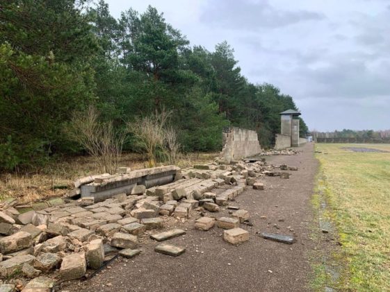 Das Sturmtief „Ylenia“ hat in der Nacht zu Donnerstag Teile der östlichen Lagermauer, die das dreieckige Häftlingslager des KZ Sachsenhausen umschloss, zum Einsturz gebracht. Die rund 2,80 Meter hohe Mauer wurde auf einer Länge von etwa 200 Metern umgeweht. Der entstandene Schaden lässt sich derzeit noch nicht beziffert, bewegt sich aber vermutlich im sechsstelligen Bereich. […]
