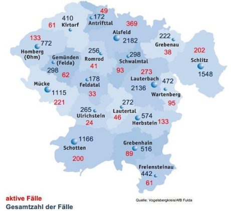 282 Neuinfektionen mit SARS-CoV-2 meldet das Gesundheitsamt des Vogelsbergkreises am Freitag. Aufgrund der nach wie vor stark steigendenden Corona-Fallzahlen weist das Dashboard des Robert-Koch-Instituts (RKI) eine abweichende Fallzahl aus. 584 Vogelsberger haben sich als genesen gemeldet, sodass das Gesundheitsamt aktuell 2223 aktive Corona-Fälle betreut. Laut RKI ist die Sieben-Tage-Inzidenz für den Kreis leicht gesunken: von […]
