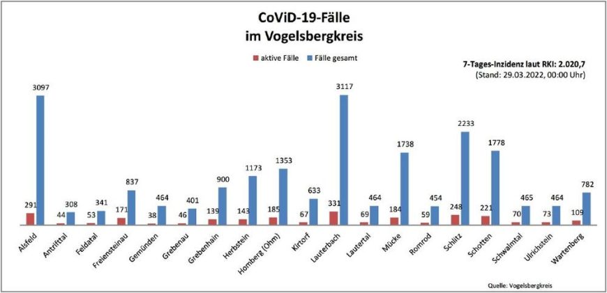 Das Gesundheitsamt des Vogelsbergkreises meldet 705 Neuinfektionen mit SARS-CoV-2. Diese sind auf verschiedene Städte und Gemeinden im Kreisgebiet verteilt. In den vergangenen Tagen meldeten sich weiterhin 1059 Menschen als genesen. Das Gesundheitsamt betreut somit aktuell 2541 aktive Fälle. Für den Vogelsbergkreis meldet das Robert-Koch-Institut (RKI) eine Sieben-Tage-Inzidenz von 2.020,7, hessenweit liegt der Wert bei 1.529,4. […]