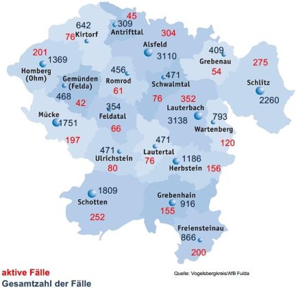 Das Gesundheitsamt des Vogelsbergkreises meldet 247 Neuinfektionen mit SARS-CoV-2. Diese sind auf verschiedene Städte und Gemeinden im Kreisgebiet verteilt. Aktuell werden beim Gesundheitsamt 2788 aktive Fälle betreut. Das Robert-Koch-Institut (RKI) meldet für den Vogelsbergkreis eine Sieben-Tage-Inzidenz von 1.941,1, hessenweit liegt der Wert bei 1.542,4. Für Hessen meldet das RKI eine Hospitalisierungsinzidenz von 7,61. Die Übersicht für […]
