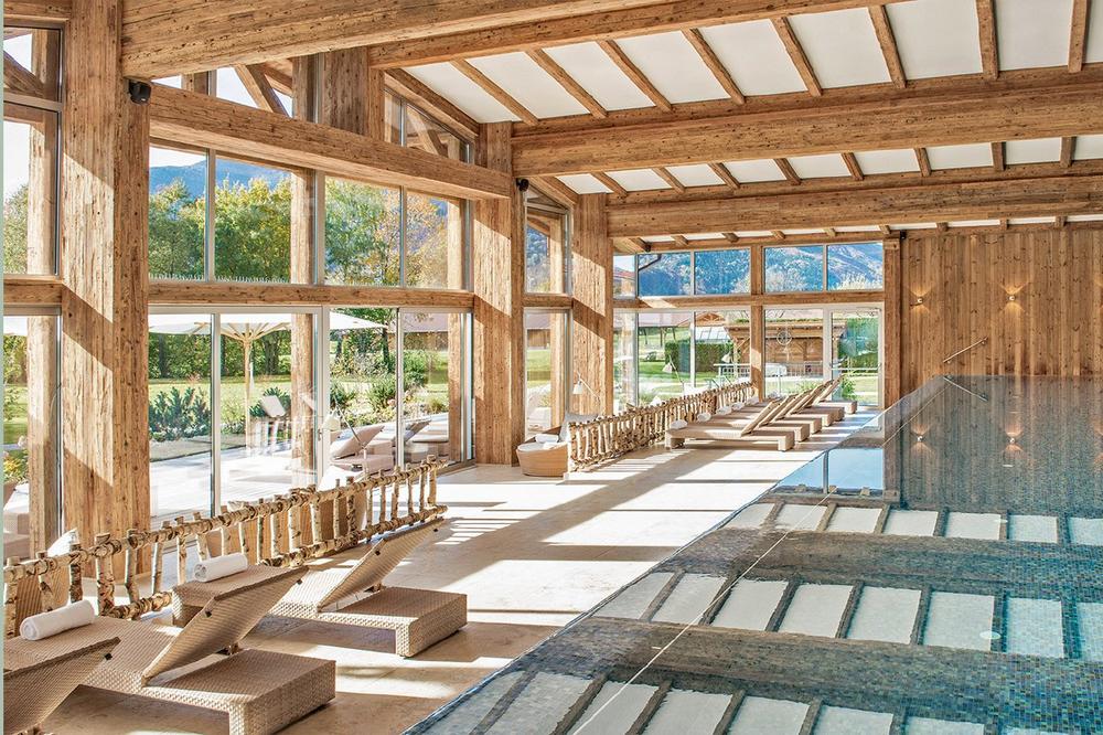 Im Resort Das Achental im Chiemgau trifft internationales modernes Design in Form von dezenter Eleganz auf bayerische Tradition. Der ursprüngliche Pferdehof mit seinen traditionellen Gebäuden wurde über viele Jahre erweitert und ist mittlerweile von Grund auf renoviert und bietet nun 179 Wohlfühlzimmer, Juniorsuiten und Suiten, einen beeindruckenden Wellness-Bereich, einen 18-Loch-Golfplatz und mehrere Restaurants – und das alles vor dem Hintergrund der umliegenden Berge und des nahegelegenen Chiemsees. Ein besonderes Augenmerk wird auf traditionelle regionale Handwerkskunst gelegt: Maßgefertigte Möbel aus Altholz, Loden (Wolltextilien aus der Region) und offene Kamine sorgen für eine gemütliche und rustikale Stimmung. Die behagliche Atmosphäre wird mit einer dunklen Farbpalette und Design-Stücken von Baxter, B&B Italia, Cassina und Kettal sowie Beleuchtungselementen von Occhio, Bocci und Fritz Hansen und handgefertigten Teppichen von Jan Kath und LPJ Studios abgerundet.