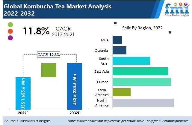 The global kombucha tea market is set to witness growth at a CAGR of 12.3% and is anticipated to reach a valuation of around USD 5,234.6 Mn by 2032. The market is driven by various factors such as the growing demand for convenience packaging and the increasing awareness about the benefits of kombucha tea across the globe.