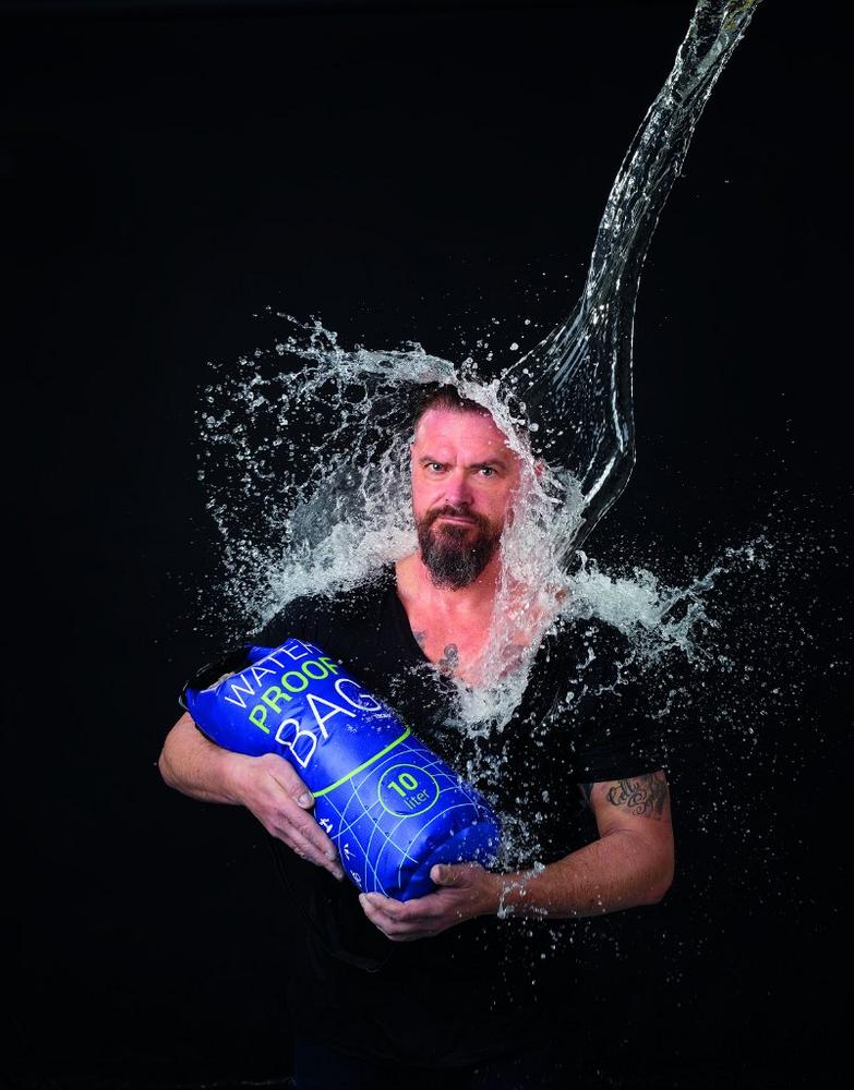 Outdoor bag for water sports, fishing, swimming, hiking, camping, etc., waterproof (IPX6 waterproof grade), with detachable shoulder strap and edge with stiffening bar for rolling and closing, 10 litre capacity, fused seams, resistant material, protects contents from water, can be rolled up to save space, 100% polyester, polyester PVC coated, Blue or Black