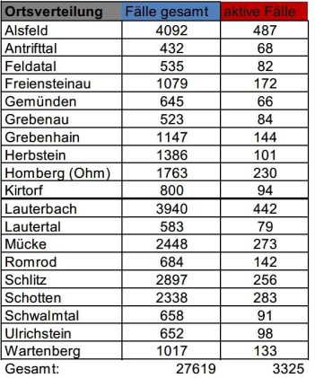 Das Gesundheitsamt des Vogelsbergkreises meldet 545 Neuinfektionen mit SARS-CoV-2 im gesamten Kreisgebiet. Bei der Behörde meldeten sich 823 Menschen als genesen. Diese betreut somit aktuell 3325 aktive Fälle. Eine 81-Jährige ist in Zusammenhang mit einer CoViD-19-Erkrankung verstorben. Für das Kreisgebiet weist das Robert-Koch-Institut (RKI) eine Sieben-Tage-Inzidenz von 1.658,7 aus. Der Vogelsbergkreis weist damit am Freitag […]