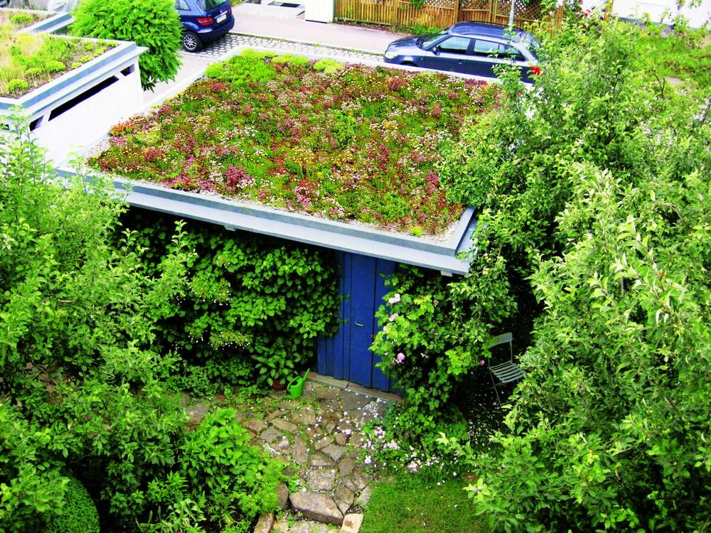 Es blüht und summt auf dem Garagendach