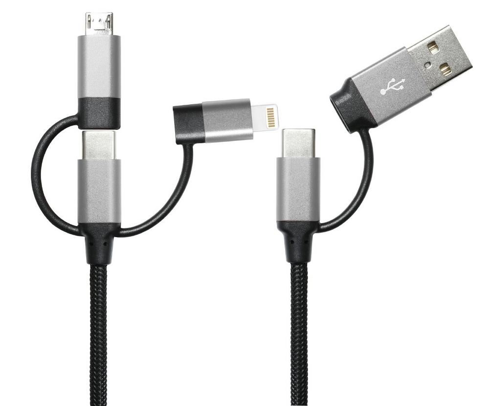 Callstel 6in1-Schnelllade- & Datenkabel USB-A/C zu USB-C/MicroUSB, 3A/60 Watt, 1m