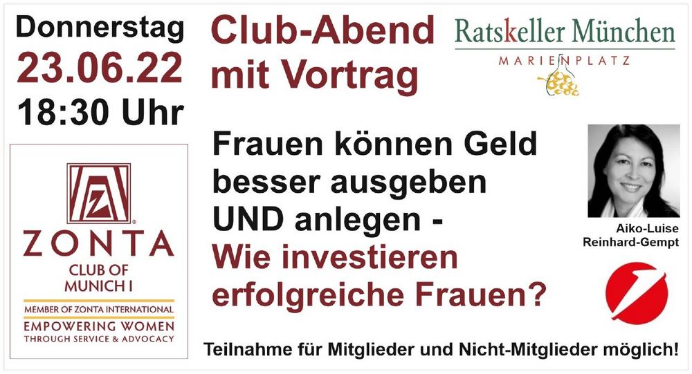 Anlässlich des Club-Abends des Zonta Clubs München I wird Aiko-Luise Reinhard-Gempt, einen Vortrag halten zum Thema