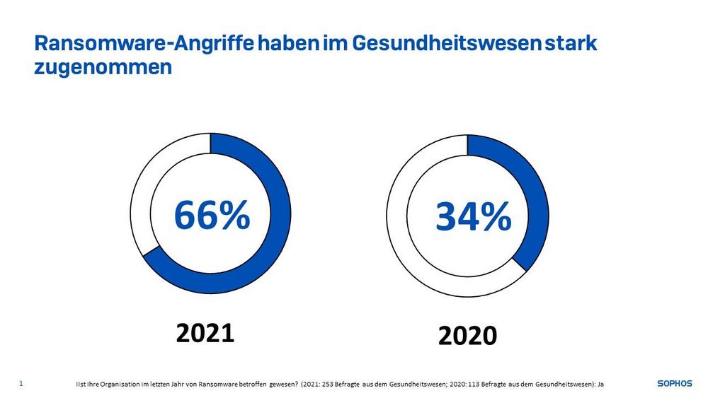 Sophos hat seine Branchenanalyse „The State of Ransomware in Healthcare 2022" veröffentlicht. Die Ergebnisse beschreiben einen weltweiten Anstieg der Ransomware-Angriffe auf diesen Sektor von 94 %. So war das Gesundheitswesen im Jahr 2021 zu 66 % betroffen, wohingegen im Jahr zuvor dieser Wert noch bei 34 % lag.