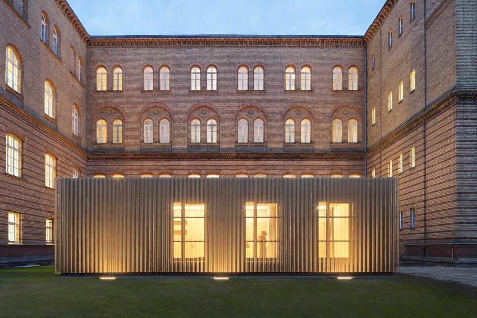 Um für die Studierenden der Fakultät Musik der Universität der Künste in Berlin zusätzlichen Raum für ungestörtes Musizieren zu schaffen, haben TRU Architekten zwei Pavillons mit jeweils sieben schallisolierten Übungsräumen und einer einheitlichen transluzenten Fassade konzipiert. Auf der straßenabgewandten Seite besetzen die Gebäude die bislang ungenutzten Höfe und nehmen den Farbton der umfassenden Klinkerwände des neoklassizistischen Hauptgebäudes auf.