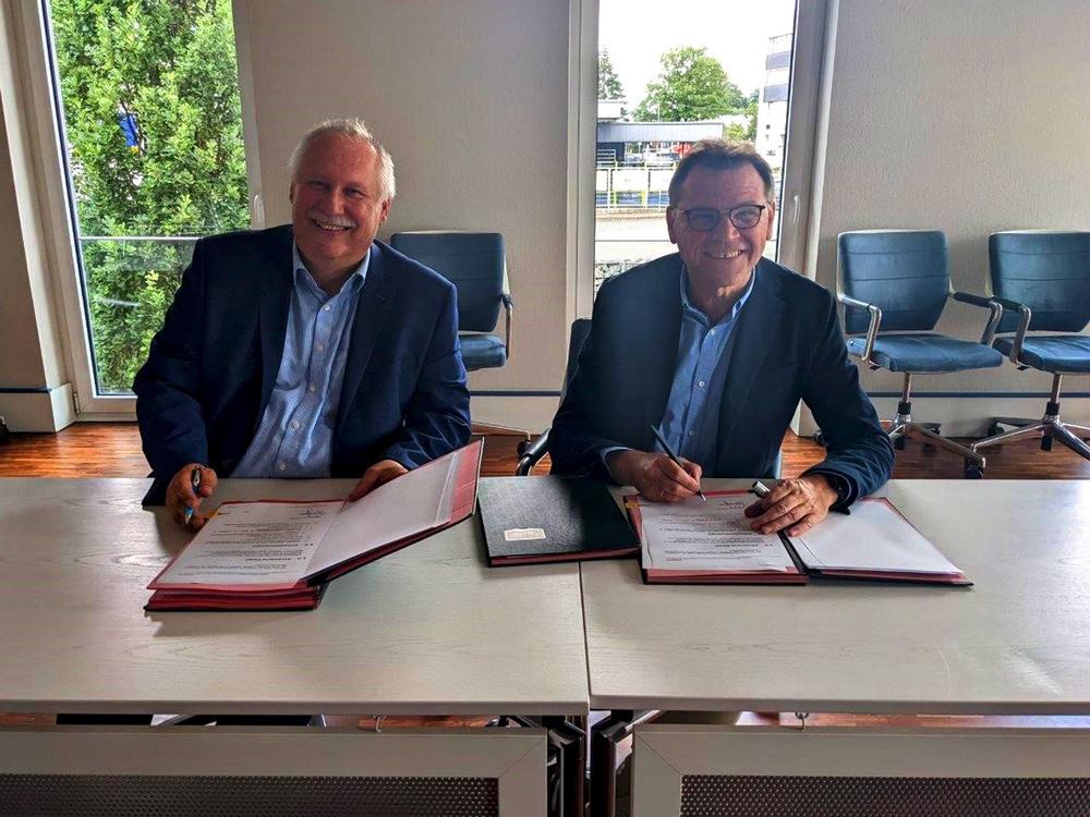 Errichtet werden 18 Ladepunkte im Busdepot Buschhausen sowie 4 Schnellladepunkte im übrigen Stadtgebiet. Der in Oberhausen geborene, dort lebende und bekennende Oberhausener Geschäftsführer der SBRS, Thomas Milewski, hat sich am letzten Freitag sehr gefreut, den Vertrag persönlich zusammen mit Werner Overkamp (Geschäftsführer der STOAG) unterschreiben zu können.