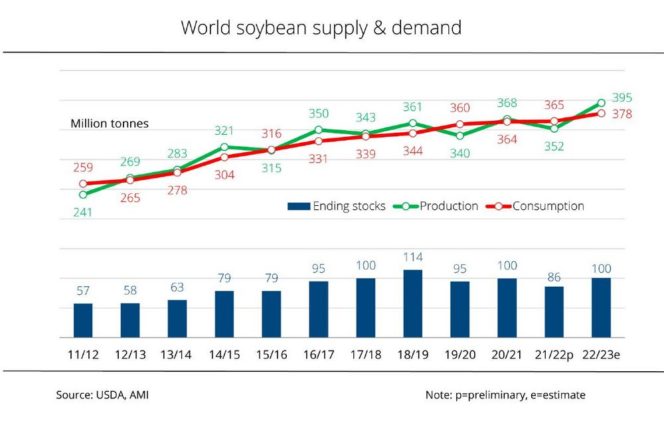 In its latest monthly report, the USDA raised its global harvest estimate and foreign trade forecast for soybeans for 2022/23. According to the USDA estimate, global soybean production in the marketing year 2022/23 is set to reach 395.4 million tonnes. This is up 680,000 tonnes on the previous month’s estimate and up 12.3 per cent […]