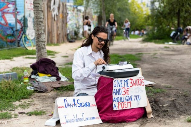Unlängst hat Straßenkünstler DAN K. SIGURD bei Periplaneta sein erstes Buch "Gib mir drei Worte" veröffentlicht. Es umfasst Gedichte, die vor allem im Berliner Mauerpark entstanden sind, aber auch Texte über das Leben als Straßenkünstler in Berlin und ist deshalb ein authentisches Zeitdokument und eine Ode an die freie Kunst. Und heiß begehrt, denn mit […]