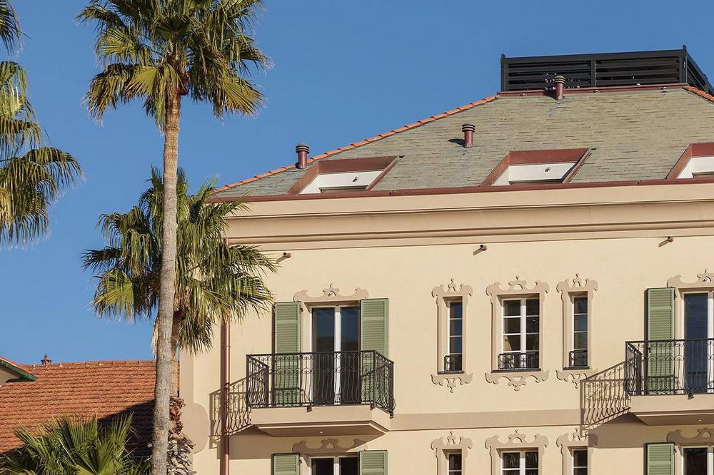 When Original Alessandro Sironi, creative director Alice Muzzioli, and architect Simone Subitoni joined forces to revive a building that stood disused for 15 years in the northwest Italian region of Liguria, they took their local surroundings and cultural heritage as inspiration. Following the masters of Novecento Italiano, an artistic movement founded in Milan in the 1920s, they envisioned the building’s renovation according to a poetic rationalism filled with innovative shapes and colors—not unlike those seen in artworks by Franco Albini, Ignazio Gardella, and Giò Ponti. Their vision has now been realized and is open for guests to experience at the new Hotel Windsor, marking Sironi’s second Italian property following Filario Hotel & Residences on the shores of Lake Como.