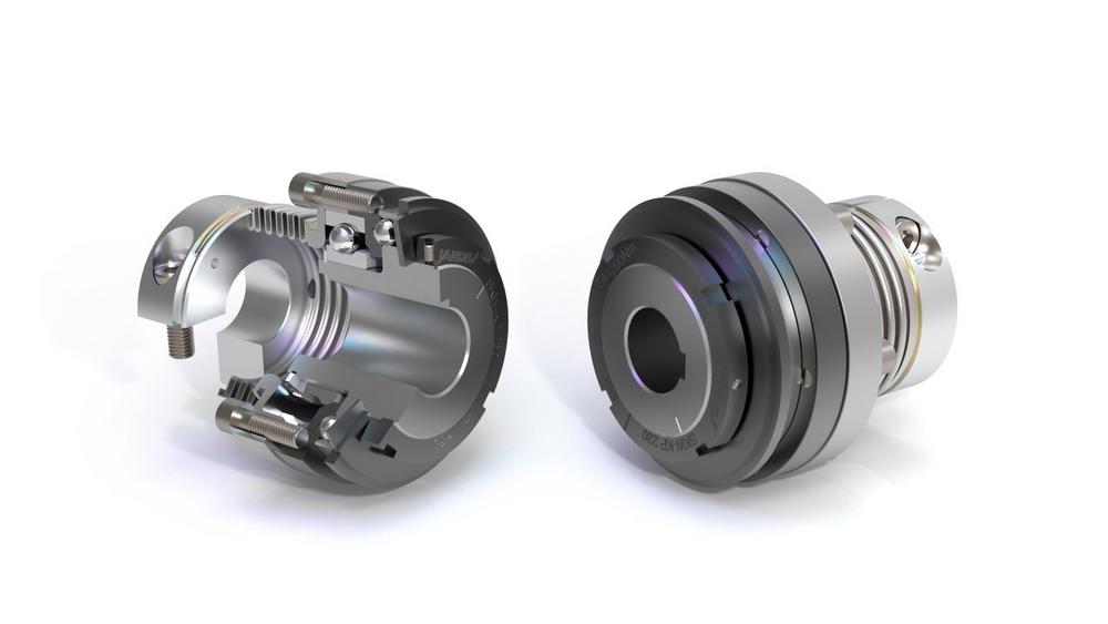 The flexible, backlash-free safety coupling of the SKW-KP series is a combination of safety coupling and servo metal bellows coupling attachment for direct drives. The safety coupling part comes with cost-effective keyway connection and integrated deep groove ball bearing for high bearing forces, the metal bellows coupling mounting with 4-corrugated bellows and easy-to-mount EASY clamping hub. The combination ensures both overload and collision protection and compensation for misalignments. It is available for torque ranges from 2 – 9000 and shaft diameters from 6 – 140 mm in the metal bellows coupling attachment and 6 – 110 mm in the safety coupling part.