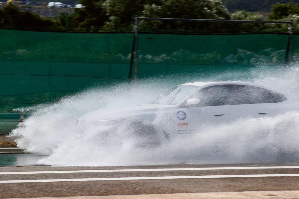 Anders sieht es beim Aquaplaning in etwa 8 mm tiefem Wasser aus. Hier zeigen der schmalere 17 Zöller und der Reifen aus Bratislava die besten Werte. Der Kleinere schwimmt bei 84,5 Sachen auf, der 18er Low-Budget-Reifen aus dem Hause Continental bei 83,9.
