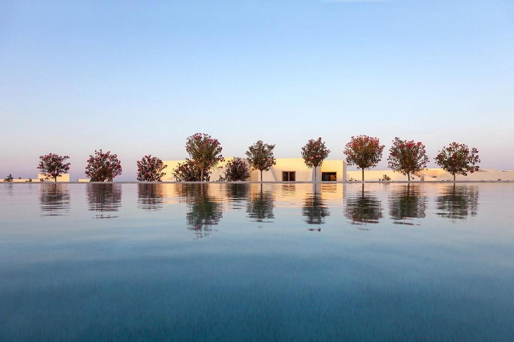 YES! Hotels Group has been making waves on Greece’s hospitality scene for years with its dedication to boundary-pushing art and design. The group’s reputation was cemented with its debut property Semiramis, a playful retro-pop-infused property envisioned by Karim Rashid, which was followed by the NEW Hotel, a gesamtkunstwerk by the Campana brothers, and Periscope, a bold foray with contemporary Greek art at its heart. The group has now grown beyond its Athenian home with the unveiling of its newest property, and the first on an island: Noūs Santorini, nestled in the stunning region of Messaria.
