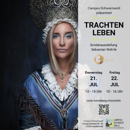 Am 21. und 22. Juli 2022 findet am Campus Schwarzwald im Campus Forum eine Sonderausstellung des bekannten Schwarzwälder Künstlers Sebastian Wehrle statt. „Der Maler mit der Kamera“, mit Trachten aufgewachsen, widmet sich in seiner fotografischen Arbeit mit seinen Trachtenbildern, in welchen er Tradition und Moderne verbindet – genauer gesagt, freche, selbstbewusste Frauen und Männer mit Piercings und […]