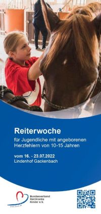 Kinder mit angeborenen Herzfehlern (AHF) erleben gemeinsam mit gleichaltrigen Betroffenen vom vom 16. bis 23.07.2022 eine tolle Reiterwoche. Wir kümmern uns um alle Teilnehmenden individuell und erfüllen nahezu alle medizinischen und sozialen Anforderungen der Gruppe. Das gilt auch für Jugendliche mit komplexen Herzfehlern bzw. mit Begleiterkrankungen. Die Pferde bringen „Coolness“ als natürliche Charaktereigenschaft mit. Neben […]