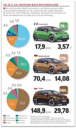 Die aktuelle Energiekrise und das Hochfahren der Stromproduktion aus Kohle in Deutschland hat direkten Einfluss auf die Umweltfreundlichkeit von Elektroautos. Die Zeitschrift auto motor und sport hat auf Basis des Strommixes am 7. Juli die CO2-Belastung durch das Fahren mit einem VW ID.3 für Deutschland, Frankreich und Polen durchgerechnet. Das Ergebnis ist ernüchternd. In Frankreich […]