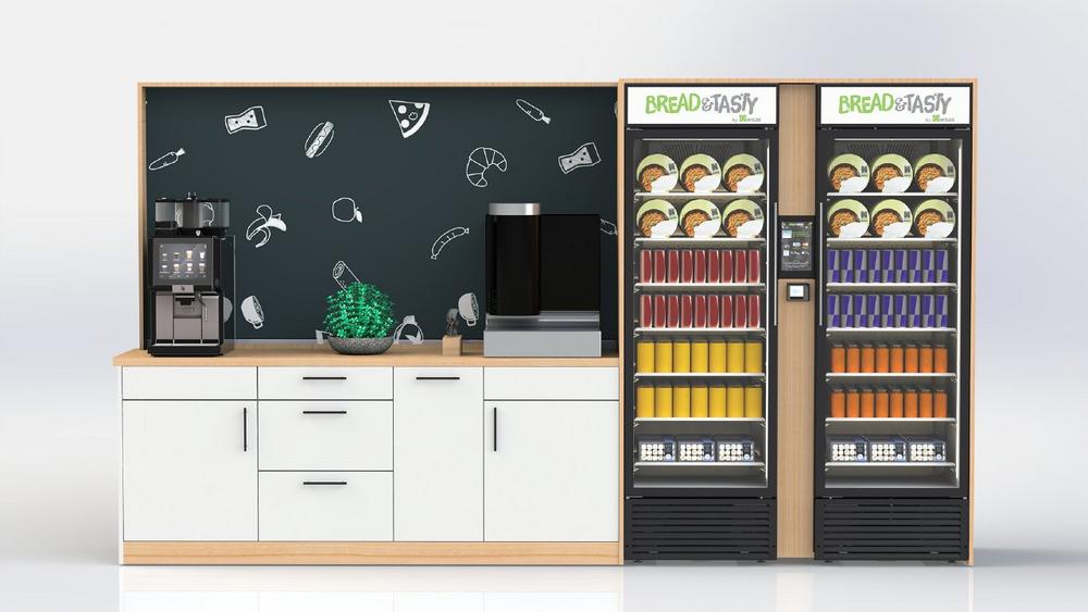 Egal ob zwölf Uhr mittags oder acht Uhr abends: An der Smart Food Station können sich Mitarbeitende jederzeit im Handumdrehen mit leckeren warmen Speisen, Snacks und Getränken versorgen – zum Beispiel dann, wenn es vor Ort kein Betriebsrestaurant gibt oder dieses bereits geschlossen hat. 2021 hat die WISAG Catering die Innovation auf den Markt gebracht und sich mit der Lösung neue Geschäftsmöglichkeiten erschlossen.