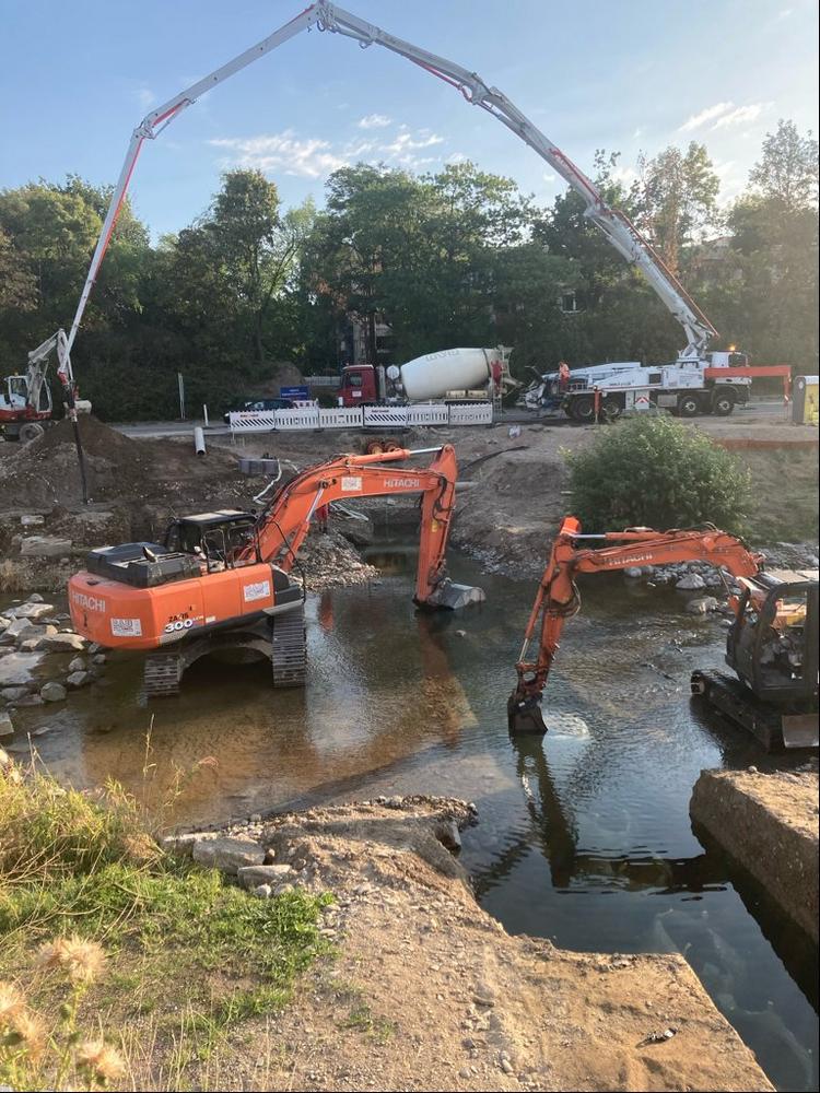 Autofahrer auf dem Zubringer Mitte konnten den täglichen Fortschritt der Dreisamunterquerung seit Wochen verfolgen und waren auch informiert, was hier geschieht: "Wir bauen für den Klimaschutz" stand nämlich auf einem Plakat am Fahrbahnrand, mit dem badenovaWÄRMEPLUS für Verständnis für die Verkehrsbehinderungen warb.