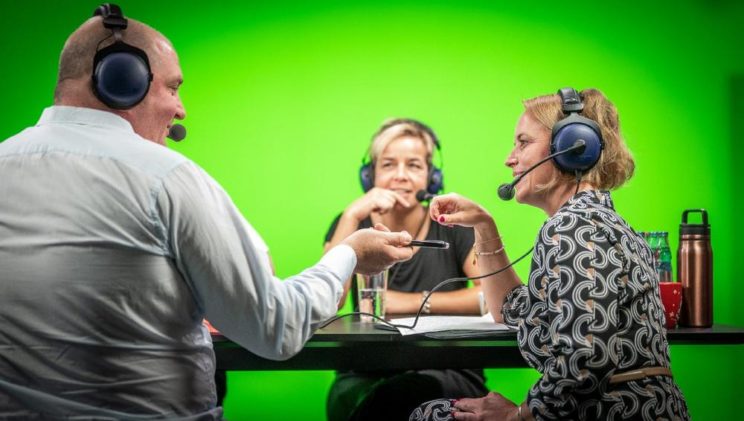 „Ich hatte immer Lust, die Klappe aufzumachen…“: Verlegerin Julia Becker und Moderator Jörg Thadeusz treffen Mona Neubaur zum Podcast im „Salon FUNKE“