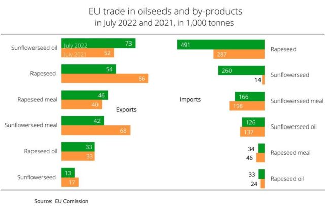 According to information published by the EU Commission, foreign trade in rapeseed and sunflowerseed has changed, but less so than expected. The changes were triggered by the severe curtailment of the export potential of Ukraine, the primary supplier of oilseeds, oilseed meal and especially sunflower oil. As current information shows, volumes coming from Ukraine were […]