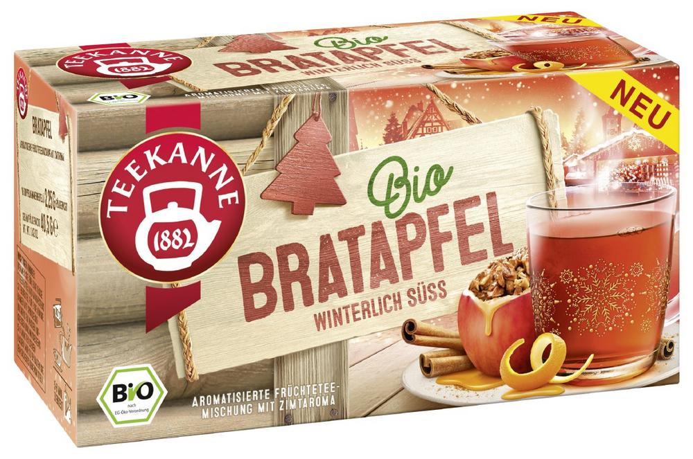Keine Jahreszeit ist so stimmungsvoll und weckt mehr Lust auf Gemütlichkeit als die Winterzeit. Die drei Sorten der neuen TEEKANNE Bio-Wintertees sind die perfekten Begleiter, wenn es draußen frostig wird. So zaubert uns TEEKANNE Bio Bratapfel mit seinem fruchtigen Geschmack nach Apfel und Zimt eine winterliche Süße auf die Zunge, während der winterlich-würzige Früchtetee TEEKANNE Bio Spekulatius den Weihnachts-Gebäck-Klassiker in die Tasse bringt – und das ganz ohne Zusätze. TEEKANNE Bio Winterpunsch lädt Teetrinker mit dem fruchtigen Geschmack nach Orangenschalen und Zimt auf eine Sinnesreise in die Welt der Weihnachtsmärkte ein.