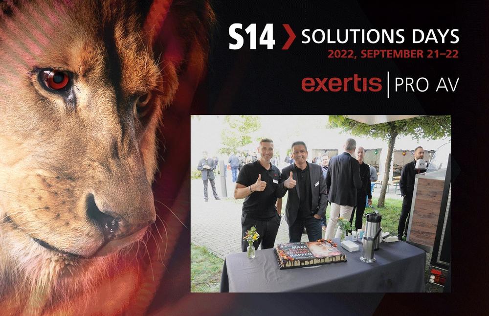 Already for the 14th time, the S14 Solutions Days took place at Exertis Pro AV – also in this year, the industry get-together was a complete success! The expectant faces of the visitors at the registration have not been disappointed: There was a lot to discover and experience at the S14. With two large exhibition tents, Exertis Pro AV and the participating manufacturers spared no effort to present attractively designed exhibition stands featuring the most exciting technology and solutions from the Pro AV industry to the visitors. Intensive technical discussions with Exertis Pro AV experts and manufacturer representatives ensured individual project consulting, developments and solution approaches in a familiar atmosphere. Accordingly, integrators, technicians and specialist dealers were able to take away new inspirations and impressions, and the manufacturers appeared very pleased again with the S14 trade fair as an industry platform.