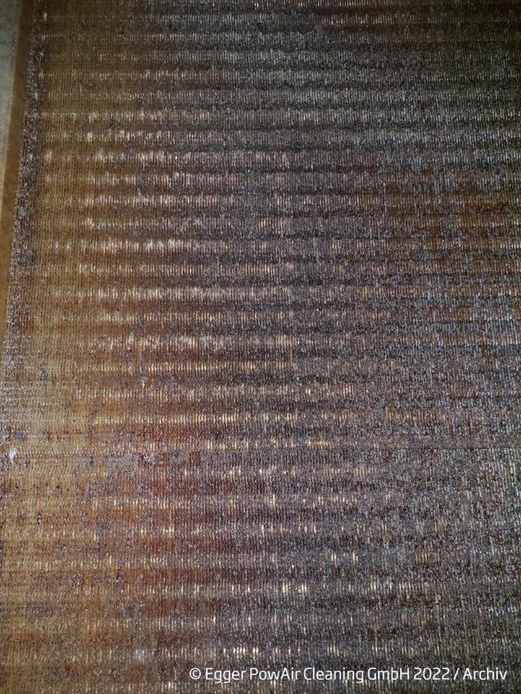 Die Bilder zeigen Förderanlagen und Bandtrockner einer großen Holzindustrie in Deutschland – VOR und NACH der Reinigung mit dem KDL-Verfahren von Egger.
